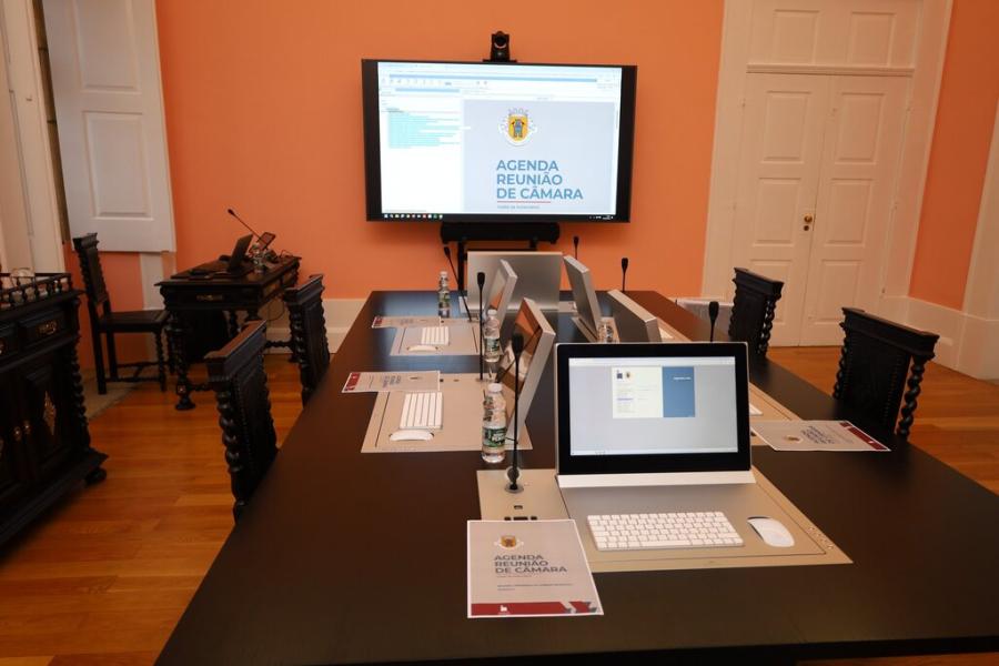 Para além da biblioteca, a sala de reuniões da presidência conta também com uma solução de equipamentos informáticos integrados de última geração, capaz de realizar conferências, apresentações, videoconferências, transmissão streaming e gravação em vídeo.